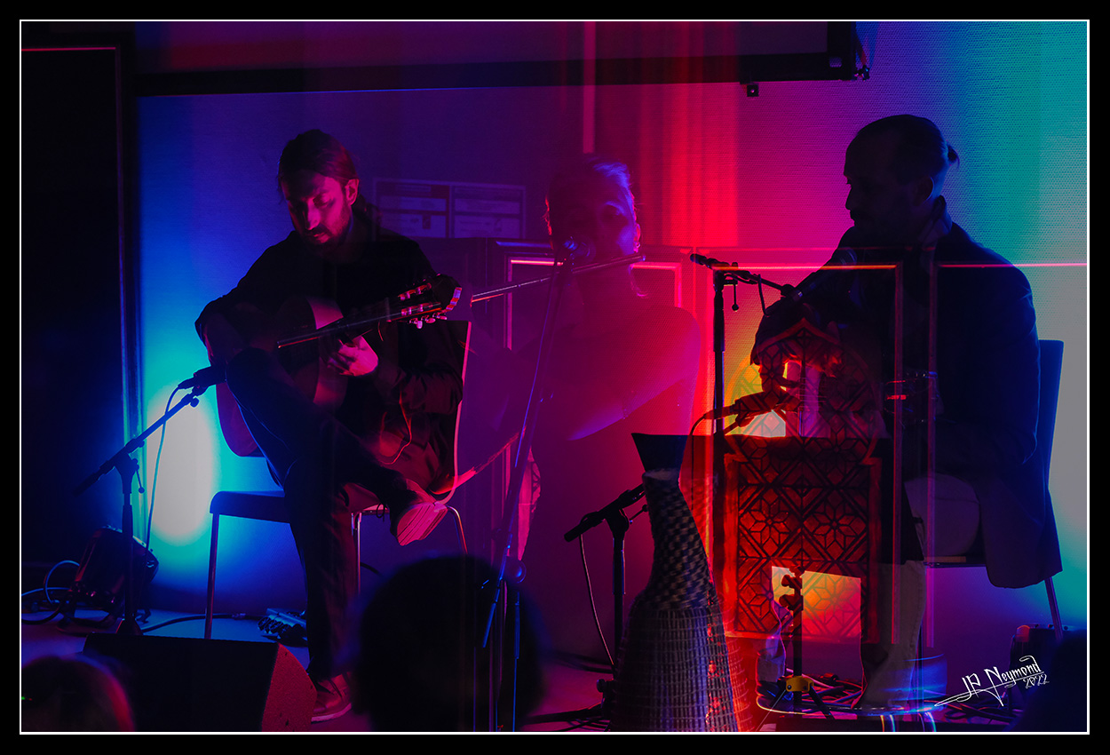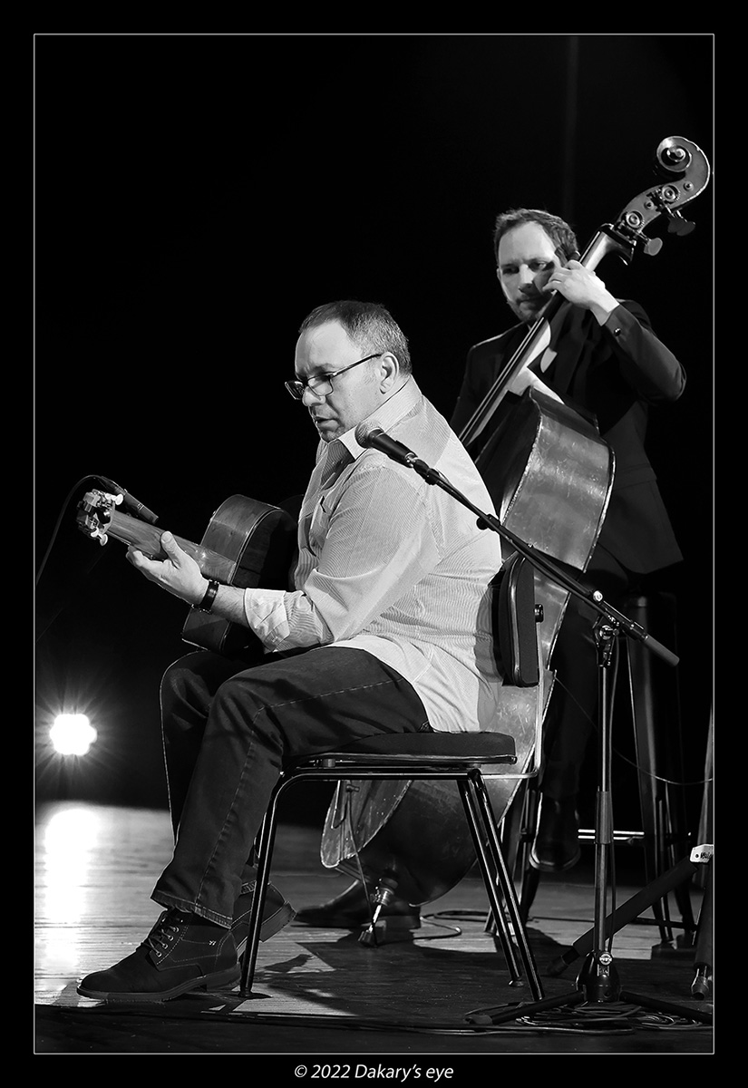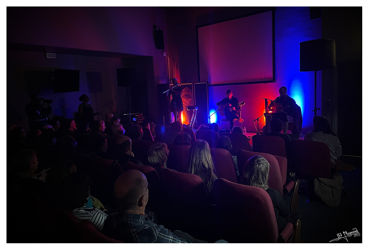 et puis un concert super coté musical, mais horrible pour le reste... salle trop pleine avec des gens debout partout, 2 "lampes de poche" en guise d'éclairages, une bleue et une orange... très mal placées en plus... bref, j'ai fait 4 photos et j'ai tout rangé pour écouter Gaël Rouilhac et Gilles Puyfages...