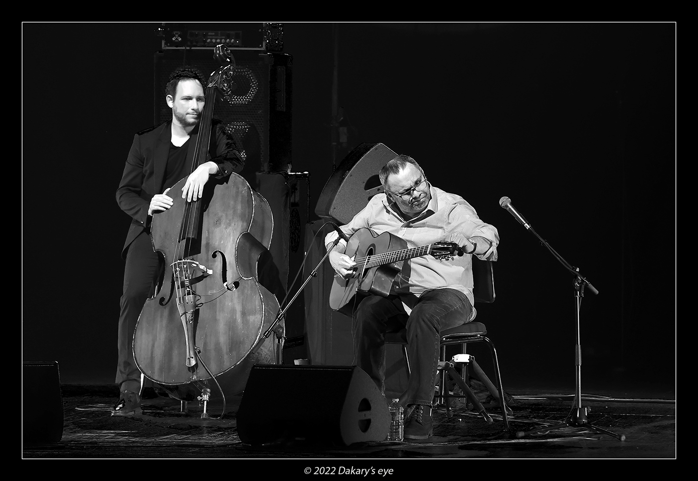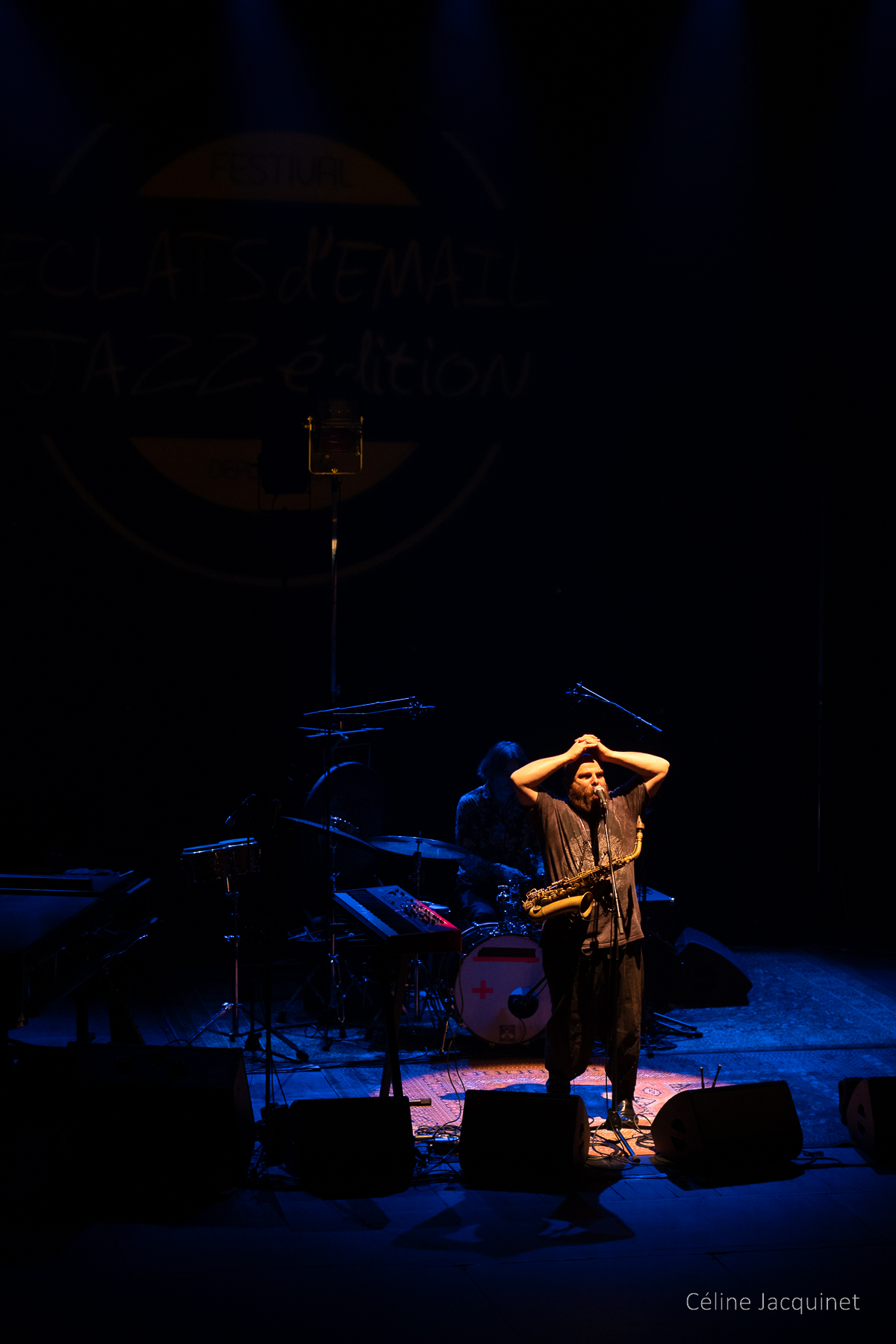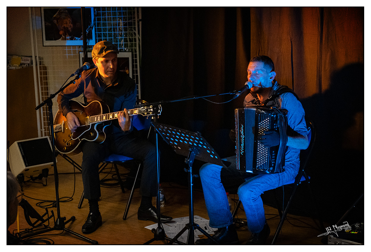 et puis un concert super coté musical, mais horrible pour le reste... salle trop pleine avec des gens debout partout, 2 "lampes de poche" en guise d'éclairages, une bleue et une orange... très mal placées en plus... bref, j'ai fait 4 photos et j'ai tout rangé pour écouter Gaël Rouilhac et Gilles Puyfages...