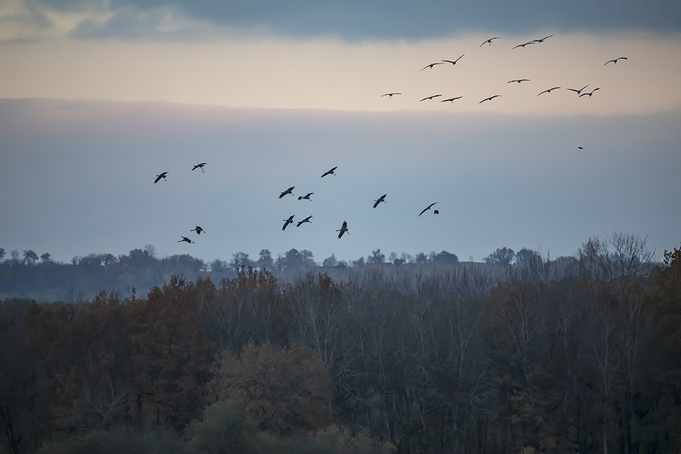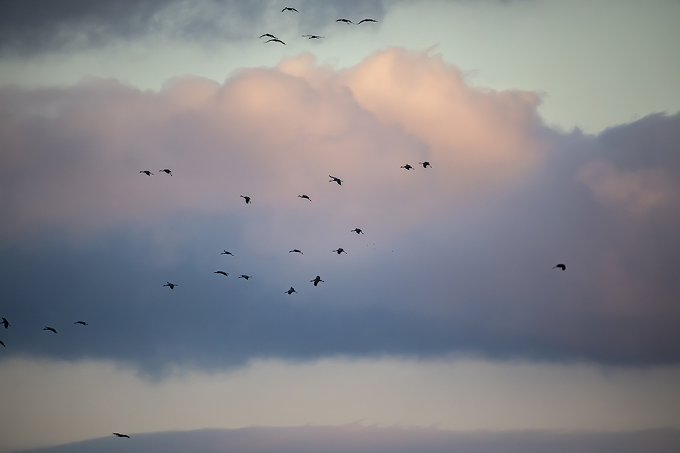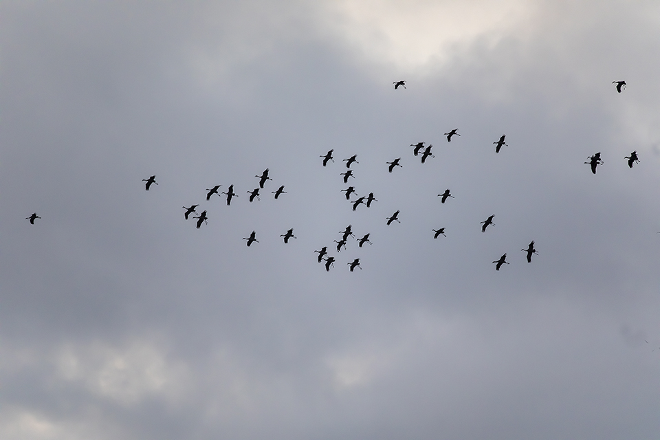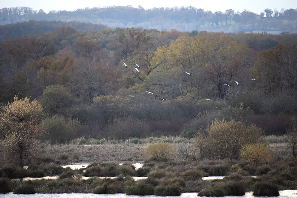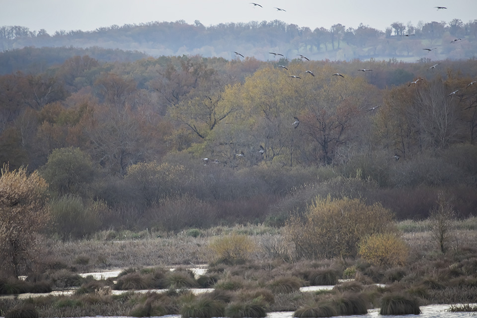 Belle ambiance hier soir vers 17h à l'étang des Landes : un bon millier de voyageuses pour un repos nocturne ( poser malheureusement un peu loin de l'affût ).