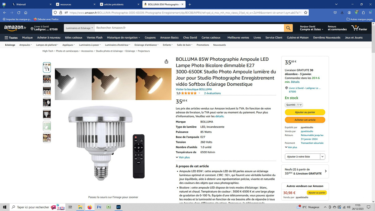 Avec ce pt ampoule vers 600LM, largement assez pour des sujets qui ne bougent pas et pour lesquels je peux utiliser une exposition longue. Pour une éclairage plus puissante il existe des ampoules LED de 85W, rendement vers 8000LM.