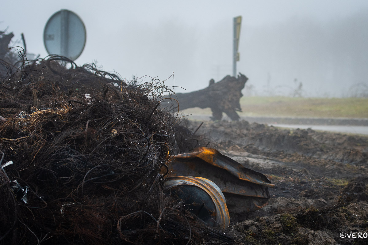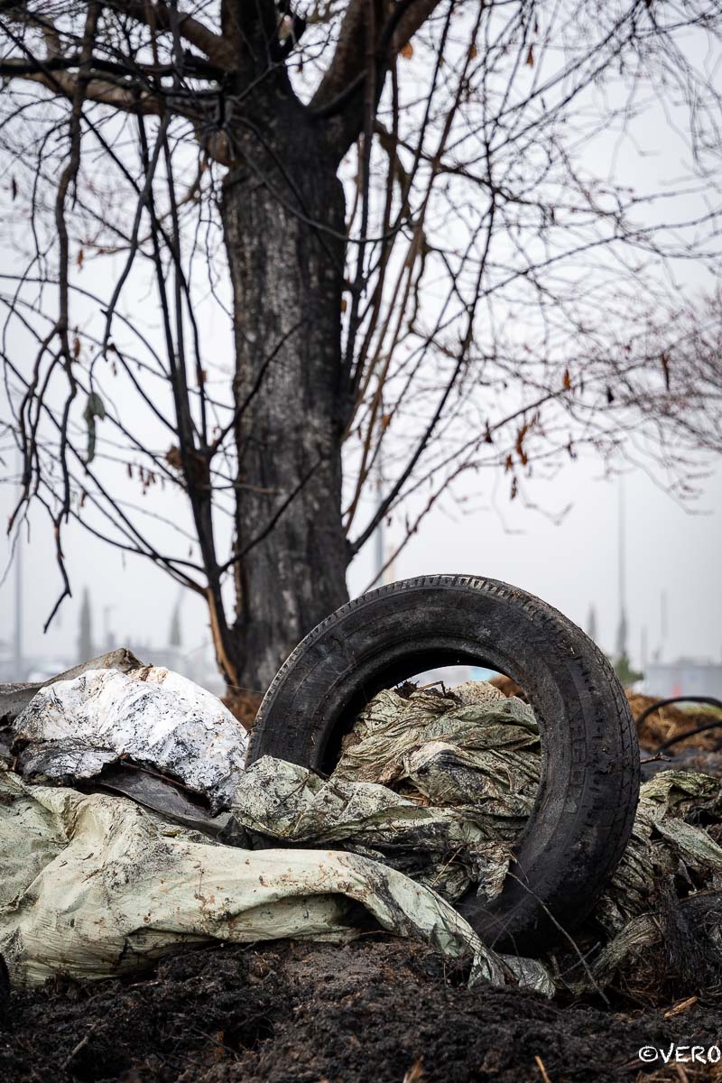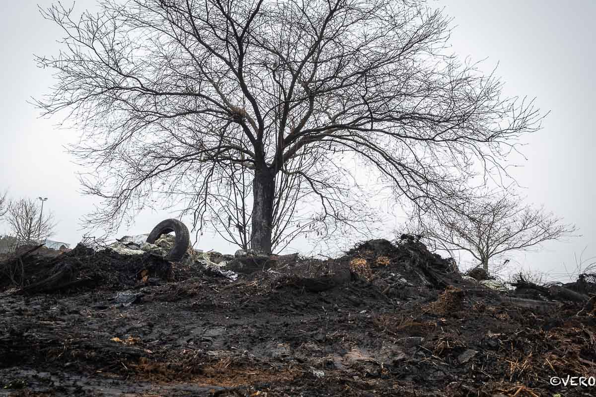 les paris sont lancés sur la longévité de cet arbre, dont la fleur est le symbole du renouveau,.. et qui malheureusement pour lui ornait un rond point occupé. Les traces de cette colère : Mi fleuri, mi brûlé