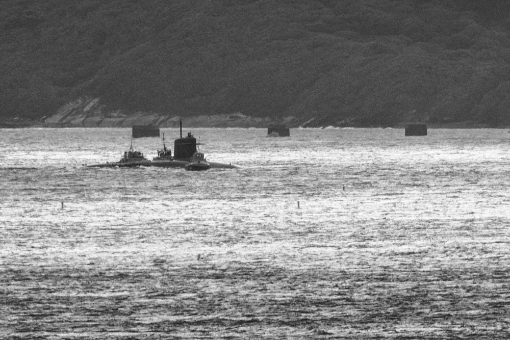 Depuis Roscanvel dans la rade de Brest vers l Ile longue deux objets flottants assez différents!