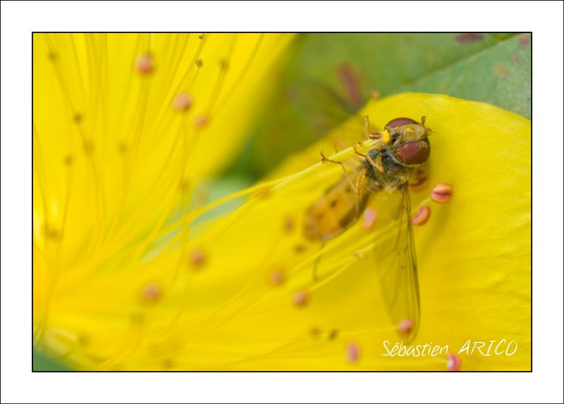 j'ai suivis cette syrphe dans les pistils d'une belle fleur jaune, où elle avait l'air de tout simplement se régaler...
