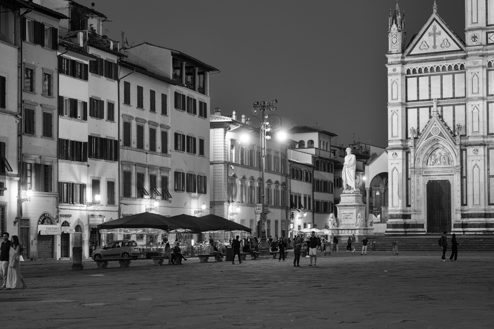 Ballade nocturne devant la Santa Croce à Florence