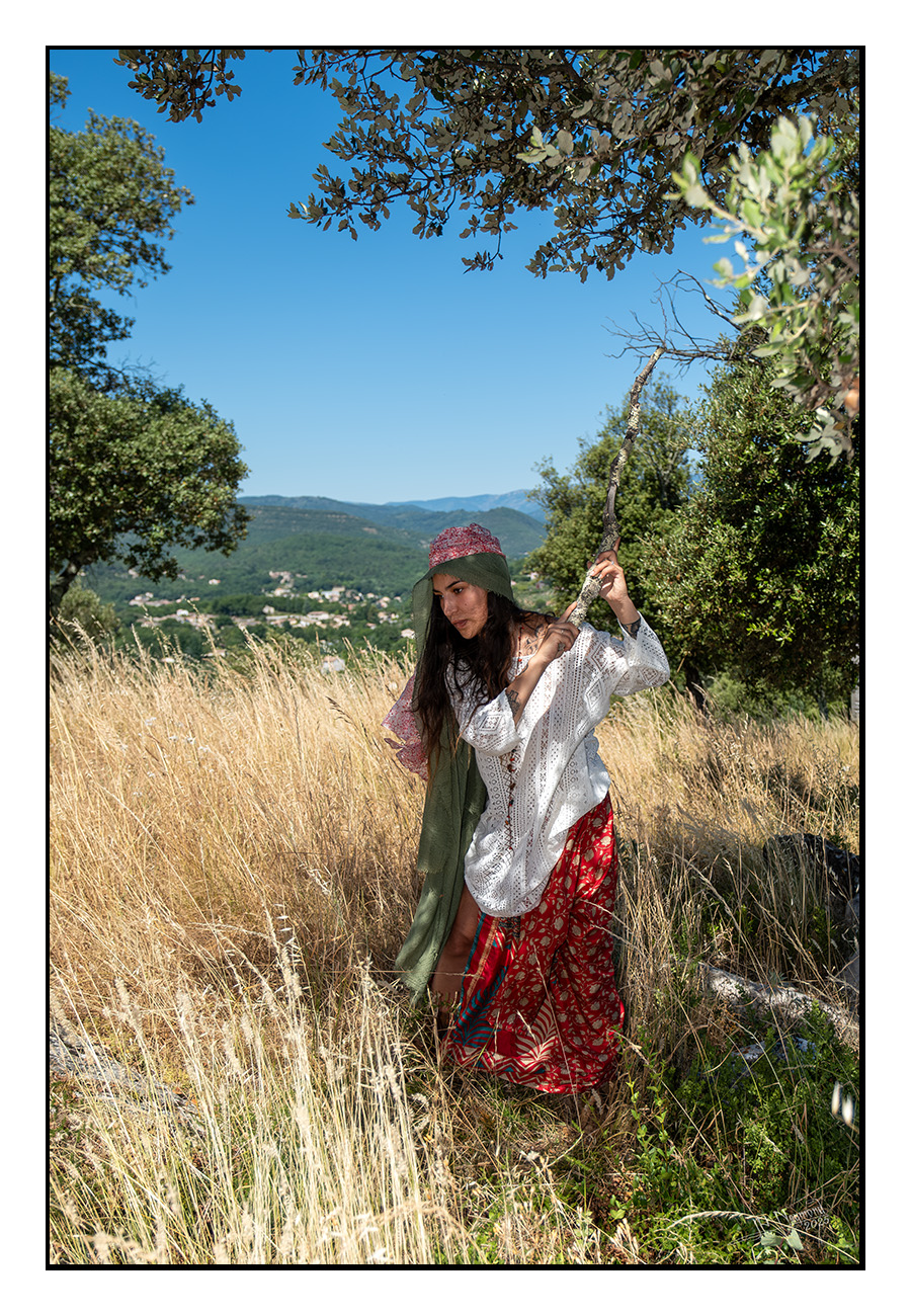 ... avec une paysanne manouche dans les Cévennes, sous un soleil de plomb...