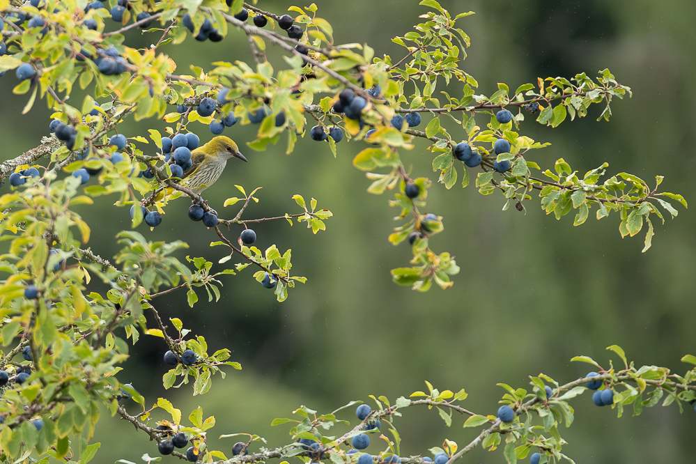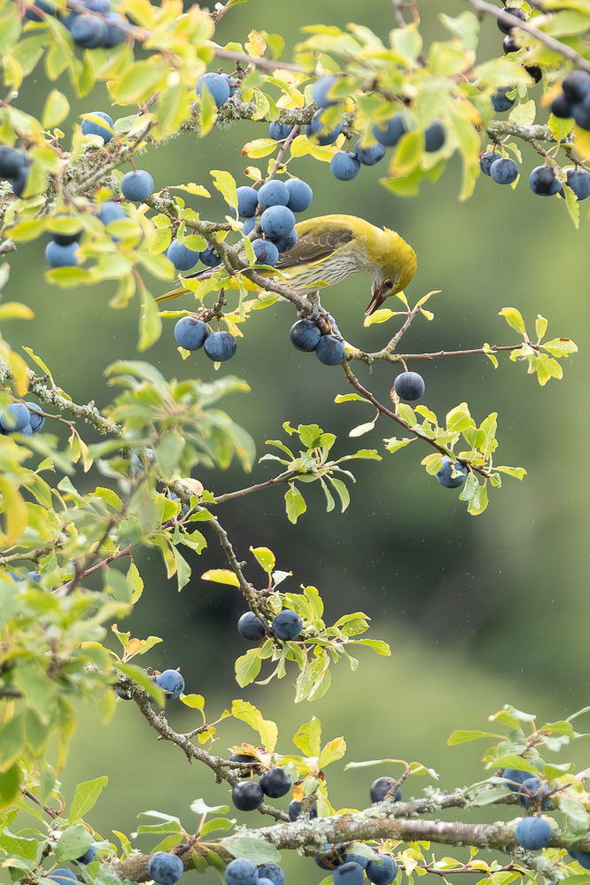 Je confirme, jolies prises Céline ; le loriot est un juvénile si j'en crois sa tenue mouchetée.