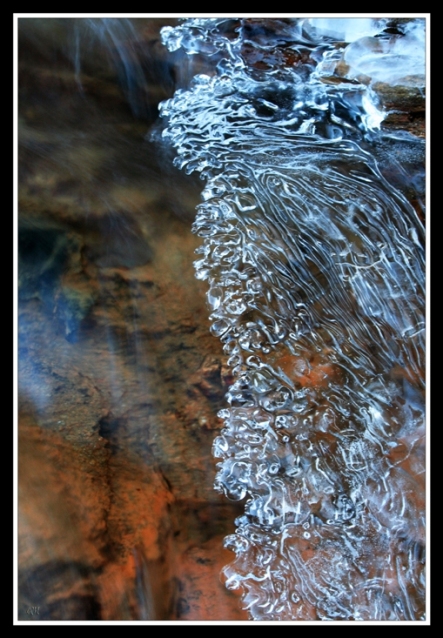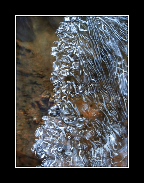 Pour "justifier" mon choix, Alain, j'ai cherché à me la jouer yin et yang, clair et sombre, liquide et solide, mais j'essaie volontier un recadrage en virant un peu de zone marron ( en fait la roche sous jacente recouverte d'oxyde de fer : fréquent dans certains coins, et l'eau n'était pas assez profonde pour modifier sensiblement la couleur ) et je vous la remet après modif.