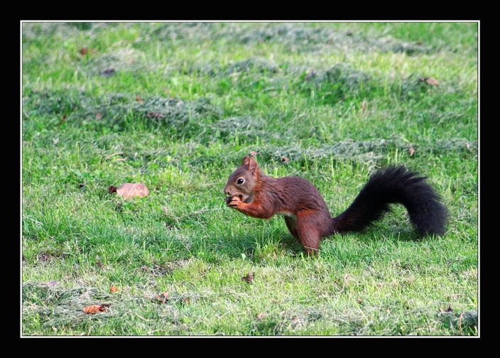 Pas facile effectivement de les choper ces bêtes là.........vu la quantité de poils je penche pour un M'sieur !;):lol:....une question /jai toujours vu des écureuils avec la queue rousse moi et celle là elle est noire....plusieures espèces d'écureuils dans notre région?....bon pour ceux qui voudraient faire dévier cette conversation je les arrête tout de suite!:P;)
