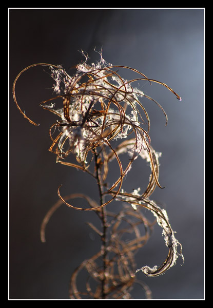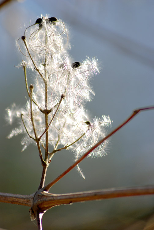Pour la première j'aime beaucoup le contre jour et le fonds, mais je cherche vainement ta map ??? c'est vrai qu'il y a du touffu sur cette fructification d'épilobe ( pas mal abimée par l'hiver ) ; quant-à ta "chose moutonneuse" je l'aime vraiment beaucoup, très joli contre-jour et une netteté que je trouve agréable ( il semble que la chose en question soit le reste post hivernal d'une fructification de clématite ) tu devrais virer le zinzin sombre en haut à gauche