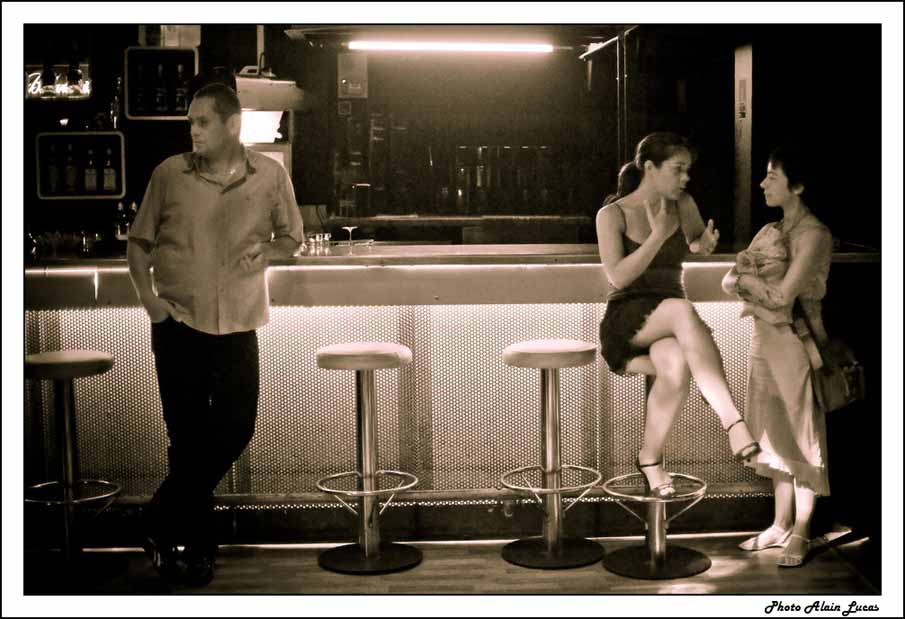 Quand je dis sans lumière c'est presque pas une blague, le traitement en reprenant l'exposition (+1.4) et la luminosité des tons clairs combiné à une désaturation permet de garder ce côté intimiste de la pénombre sans les problèmes de la couleur dégueulasse des éclairages rouges oranges, du coup on ramasse du grain en échange mais sur ces clichés c'est pas gênant au contraire