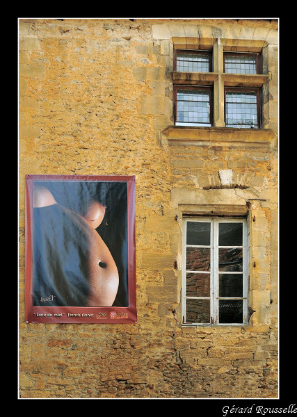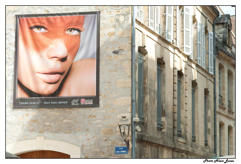 Il y a des grands panneux aux murs de Sarlat, ça donne quelque chose à photographier sans se taper la foule au sol