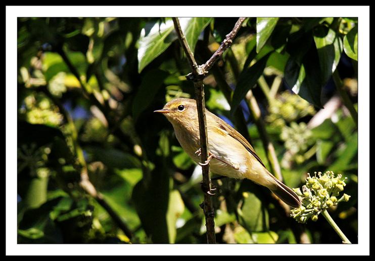 ... la rousserolle effarvatte, qui grapille des insectes dans le vieux sureau couvert de lierre en fleurs.