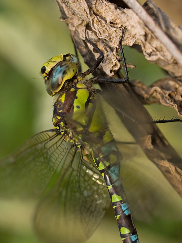il n'est pas facile de gérer la profondeur de champs sur une libellule... surtout lorsque tu veux lui tirer le portrait! tu te retrouves souvent avec les yeux flous pour avoir la tête et le reste du corps net... pour le coup tu t'en sors pas trop mal parce que cet aspect de flou est pas mal atténué sur ta photo