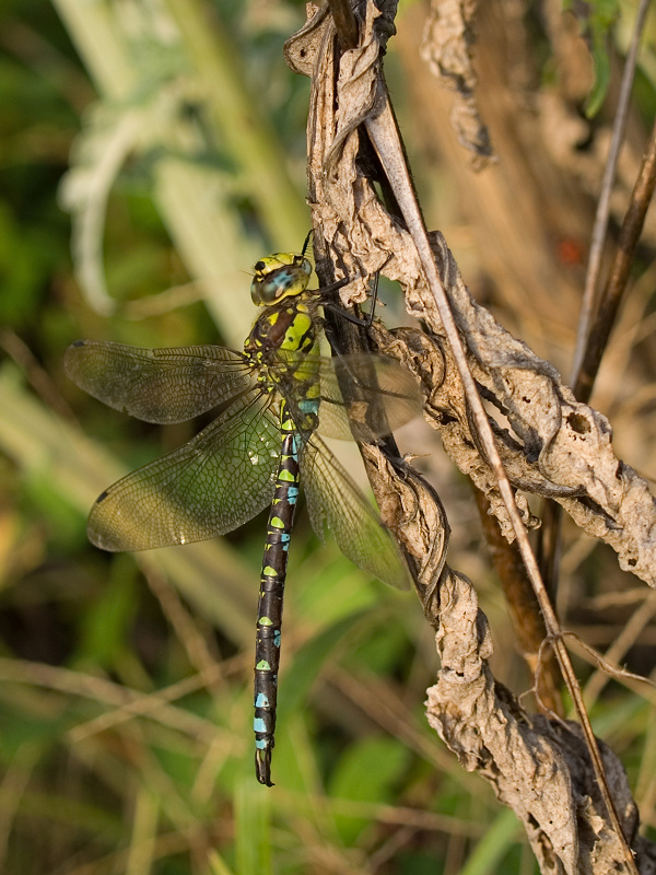 Une jolie surprise m'attendait sur mes artichauts fanés, une aeschne bleue mâle, qui prenait les derniers rayons de soleil de la journée. Particulièrement sage, elle m'a laissée l'approcher au plus près. Après ces jours maussades, je ne m'attendais pas du tout à rencontrer des libellules, qui a cette saison, se font plutôt rares.