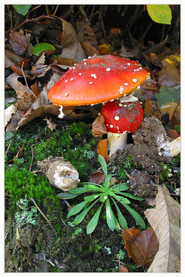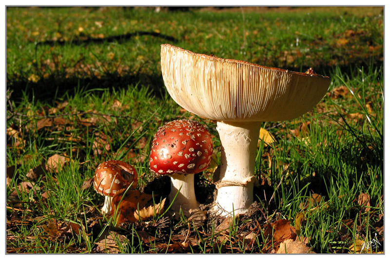 Je sais... encore des champignons... mais au soleil couchant, j'ai pas résisté à cette famille de tue mouches.