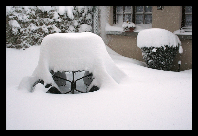 Si je lis les commentaires sur un des fils du jour, je trouve que dans le 23, on s'en est plutôt pas trop mal tiré, les camions ayant été arrêtés assez tôt, ... hé puis on a vu bien pire : ci -joint regard sur ma terrasse cette nuit, vers 10h30 (environ 20 cm) et regard sur la même terrasse un certain 23 janvier 2007 (plus de 60 m ) (photos sans grande valeur esthétique, juste pour la comparaison )