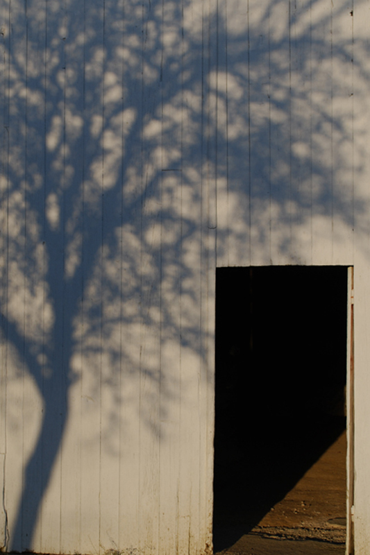 J'aimais bien le dessin de l'ombre de l'arbre sur la porte claire.