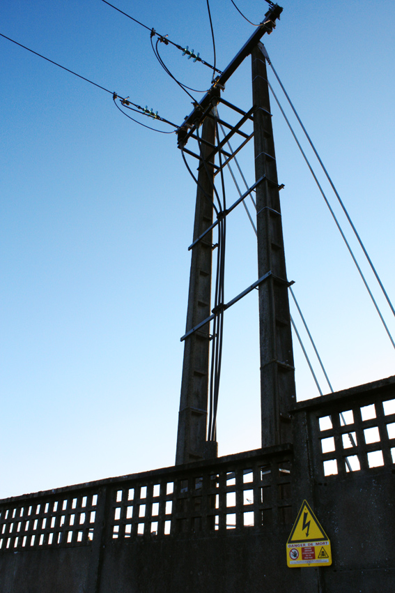 A choisir entre les 2, je préfère la deuxième que je trouve plus agréable visuellement même si le cadrage vertical va un peu à l'encontre des lignes que tu dégages de cette image. Pour moi, la première est trop sombre, trop contre-jour et la coupe de la tête du poteau est soit trop soit pas assez pour moi.