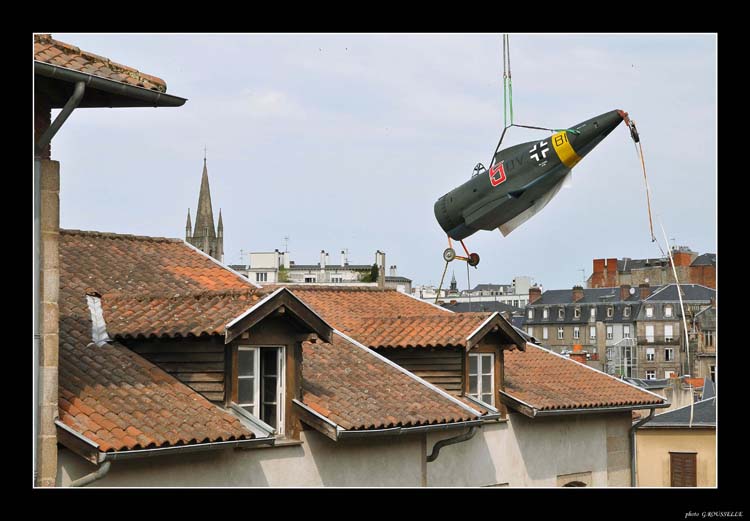 mise en bière de l'avion au musée de la résistance ce matin, je reviens du POPU,croyant leur filer un petit truc,misère le photographe du POPU a réussi a ce faire inviter dans les étages en face.:mad: