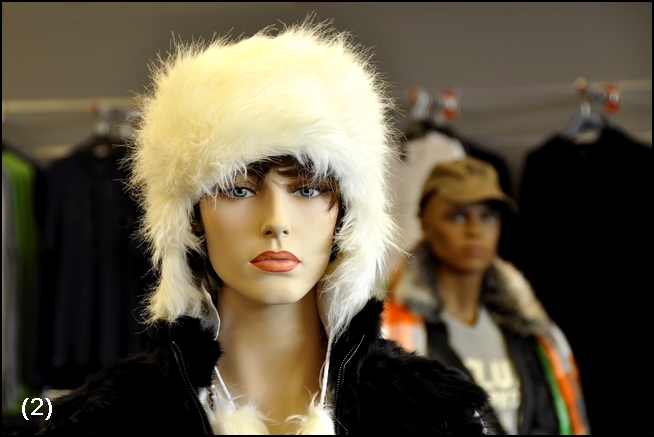 Après, si t'es bien pote avec la direction du magasin et qu'ils acceptent que tu y mettes un peu le "souk" (je t'avoue que perso j'oserai pas... mais bon, je te donne l'idée et après tu en fais ce que tu veux), pourquoi ne pas refaire la même photo en cadrage serré, mais avec un mannequin dans une des cabines, et des humains dans les autres... Ou un mannequin dans une cabine, un humain dans une deuxième et une vide dans une troisième (ou inversement pour faire une progression du vide vers l'humain, puis vers le mannequin qui remplace l'homme au final).