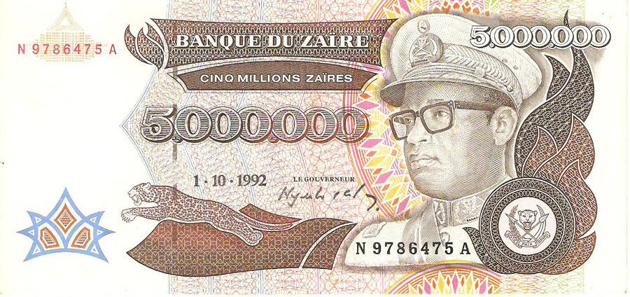 Question niveau de vie... avec le billet de 5millions de Zaïre, on pouvait acheter... un pain le matin, une baguette le soir... l'inflation était de l'ordre de 10 à 15%... par jour...