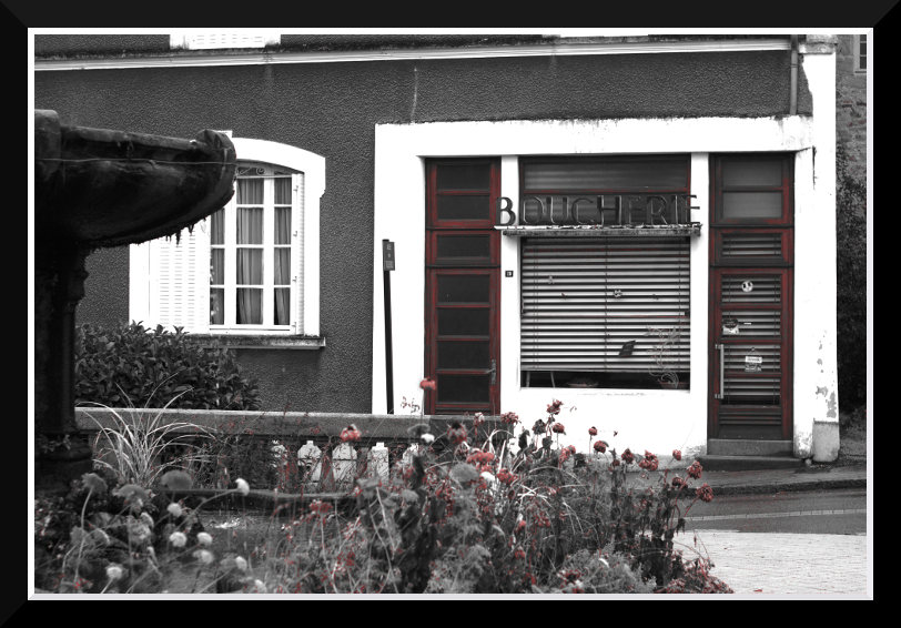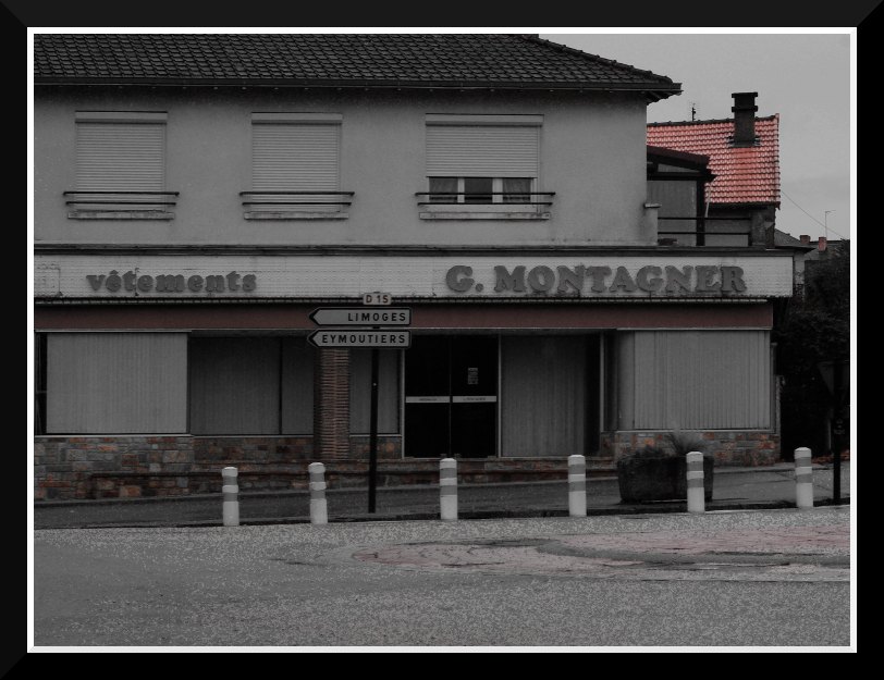 Sans vouloir vous gâcher le moral, quelques vitrines de Chateauneuf la Forêt, un jour de pluie.