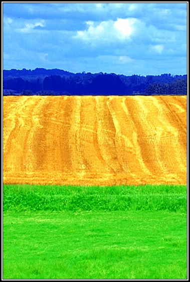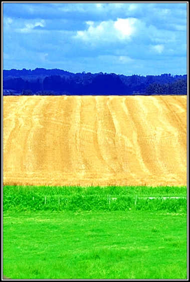 Coté composition, je préfère la première sans le poteau parce que les sillons sont plus marqués... Ce qui me gêne, dans les deux,c'est ce bout de route qui apparait dans le haut du vert et qui ramène à la réalité.