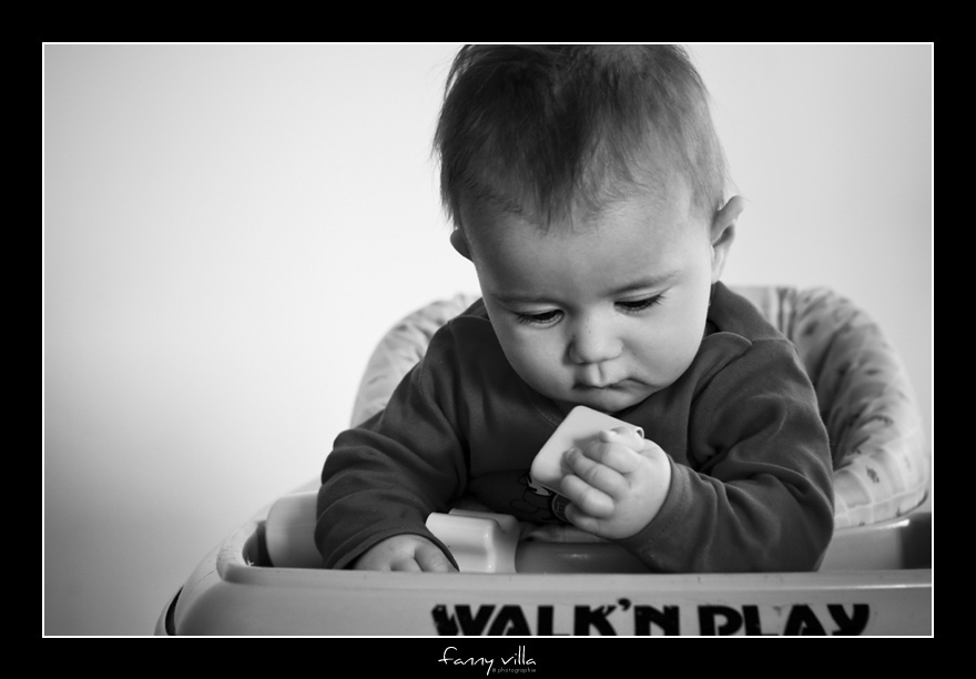 Cela dit, pourquoi n'as-tu pas cadré un peu plus haut? Cela aurait permis de virer l'inscription sur la chaise haute et de ne pas "couper" la tête.