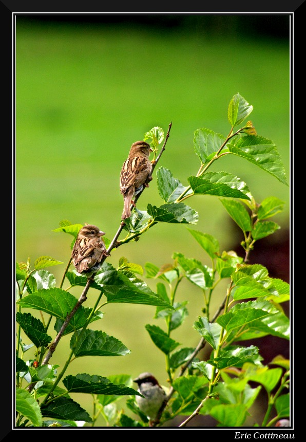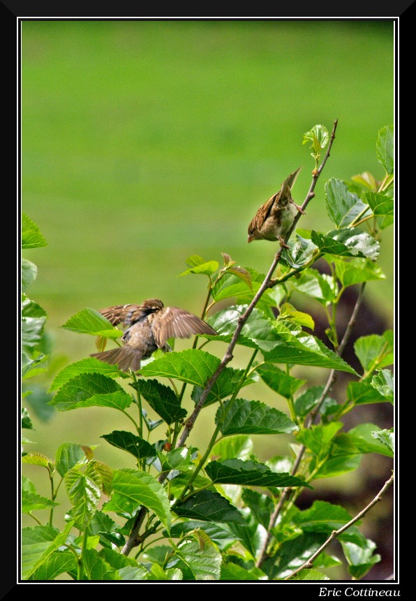 Rien de bien original mais les moineaux font tellement partis de mon environnement que je me devais d'essayer de les photographier.