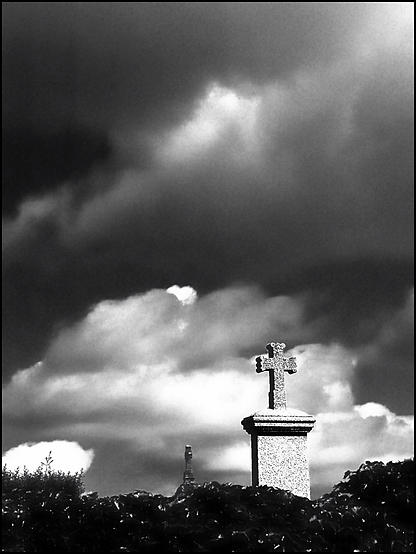 Sur le calvaire, le petit nuage tout blanc en bas et à gauche attire mon œil vers ce bord de l'image et c'est bien dommage pour la voute céleste menaçante à souhait.......
