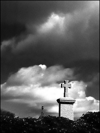 par contre j'accroche beaucoup plus à ton calvaire! je ferais la même remarque que JP concernant le nuage en bas à gauche qui est très lumineux, par contre, je trouve le rendu général de cettephoto très bon! un ambiance chargée qui parle apr rapport au sujet de ta photo!