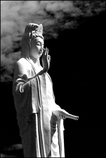 Je continue quand même mes petits essais de N&B avec un Stûpa (Thap en vietnamien puisque là, c'est un temple bouddhiste Viet) et un petit calvaire bien de chez nous.