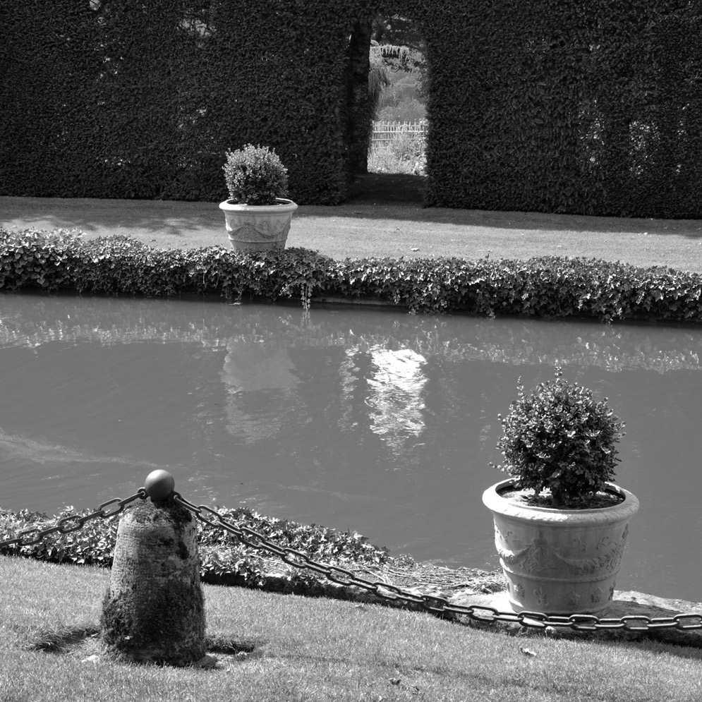 Sur la 1, ce qui me gêne, c'est ce mur de verdure en fond. Je pense, et cela n'engage que moi, comme d'hab, que j'aurais tout axé sur le triangle formé par les 2 jarres ( en diag) et la borne avec ses chaines, en essayant de placer le reflet sur un point de force et en virant l'ouverture dans la haie.. Cela aurait nécessité de rechercher un autre angle de vue, en se baissant (?), en se déplaçant à D ou à G (?) avec le risque de se foutre à l'eau. Était ce possible? ça, c'est une autre paire de manches!