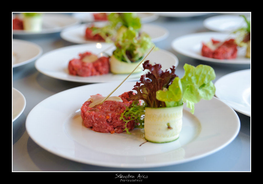 - sur la 1, je trouve qu'il manque de la pdc pour avoir le plat net en entier. De plus, la map est sur le tartare qui est dans l'ombre projetée du fagotin de salade flou. Du coup, l'élément le plus visible et le mieux éclairé du plat est le fagotin flou