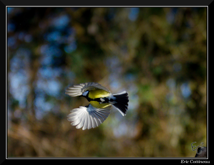 OK, elle n'est pas parfaite, mais la mésange, çà vole vite... alors cette photo, elle me plait bien!.