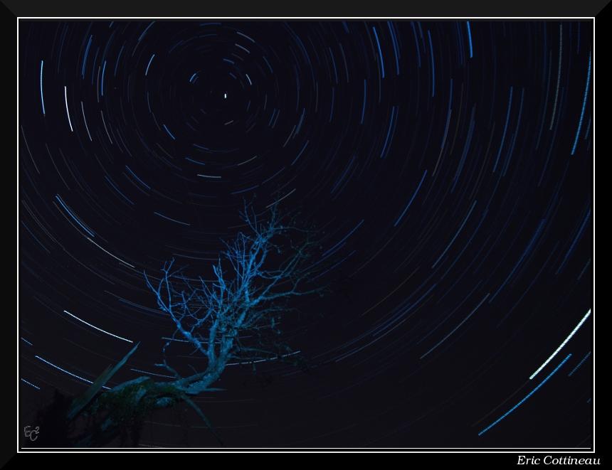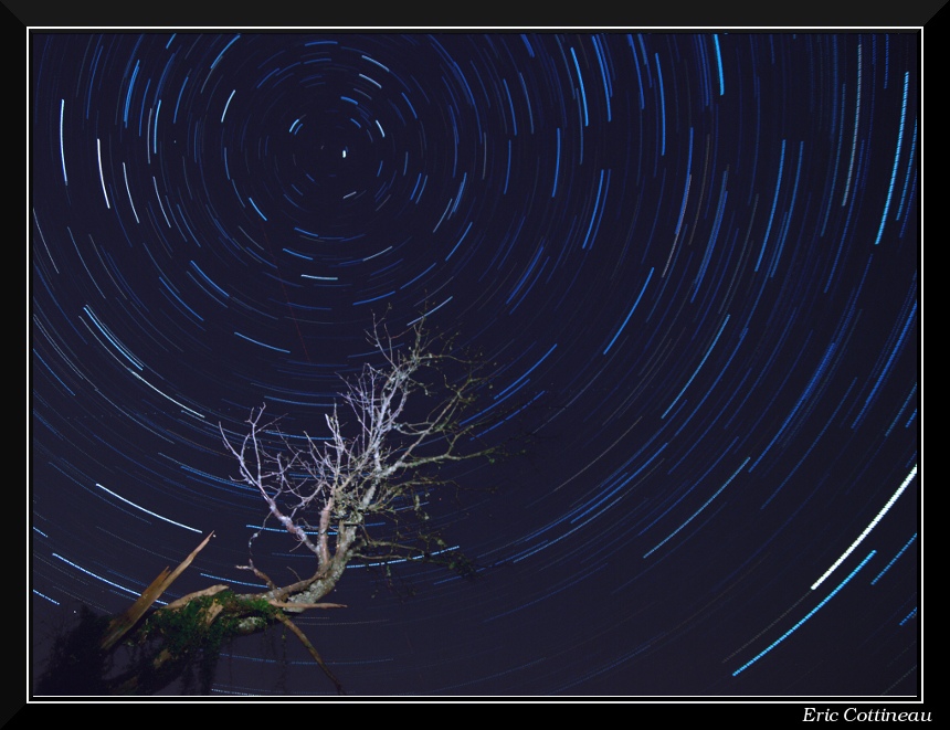 Pour info, c'est une superposition sur GIMP de 12 photos de 30s à f/2.8 et 400 iso, prises à 45 s d'écart chacune.