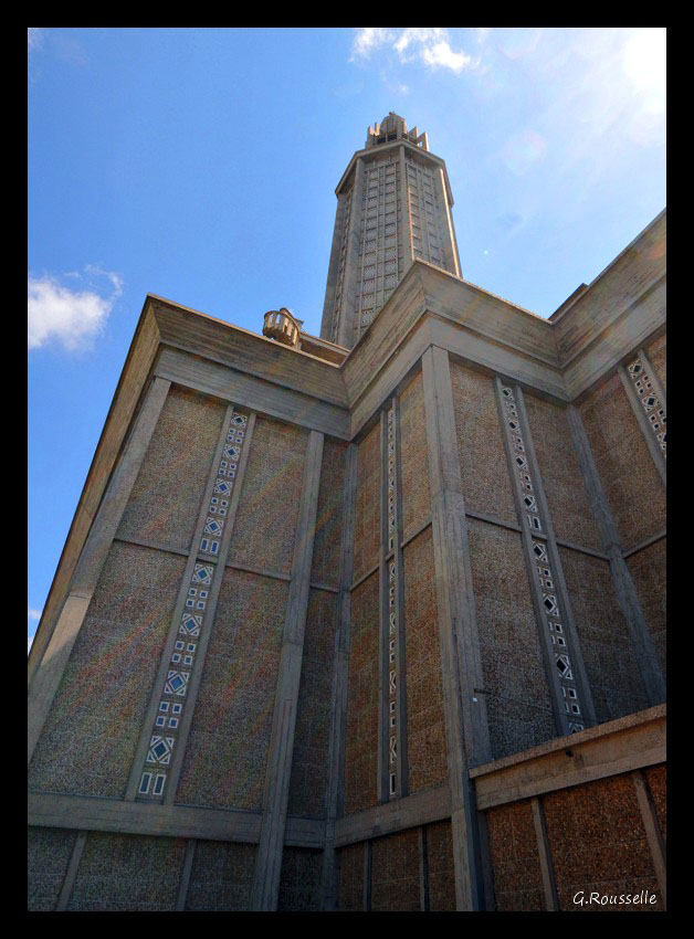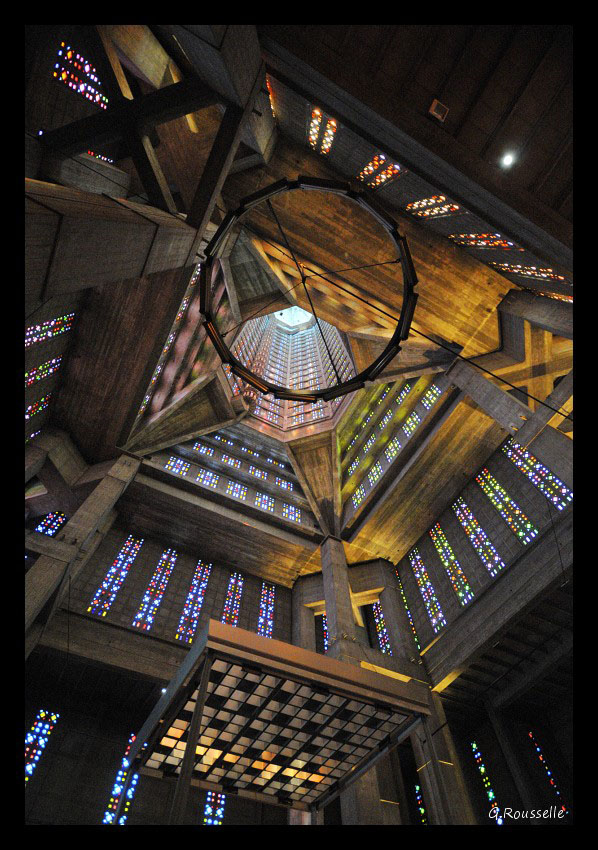 Eglise saint Joseph du Havre,par l'architecte Auguste Perret elle fait 107m de haut et les vitraux sont d'une femme, Marguerite Huré.:)