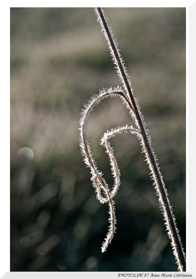 Forte gelée chaque matin il y a quelques jours. J''ai shooté entre autres, à 5 jours d'intervalle le même brin d'herbe givré avec les petits cristaux. a votre avis ?