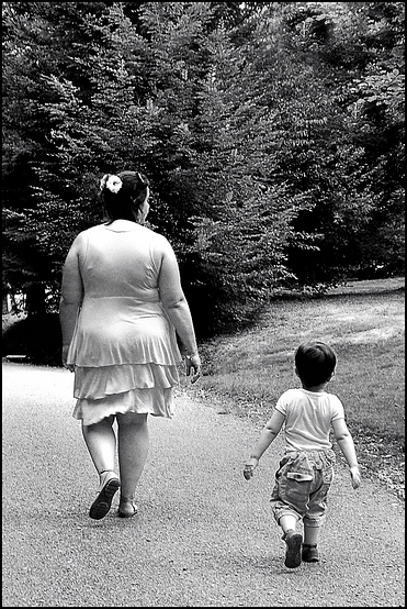 Je ne sais si c'est pertinent, mais le "trou" de lumière, à gauche, à hauteur du coude gauche de la maman, pourrait être supprimé ?
