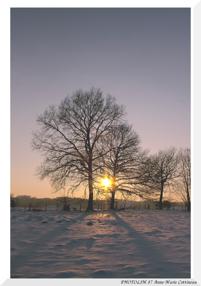peu original, coucher de soleil et sol enneigé: des lumières que j'aime