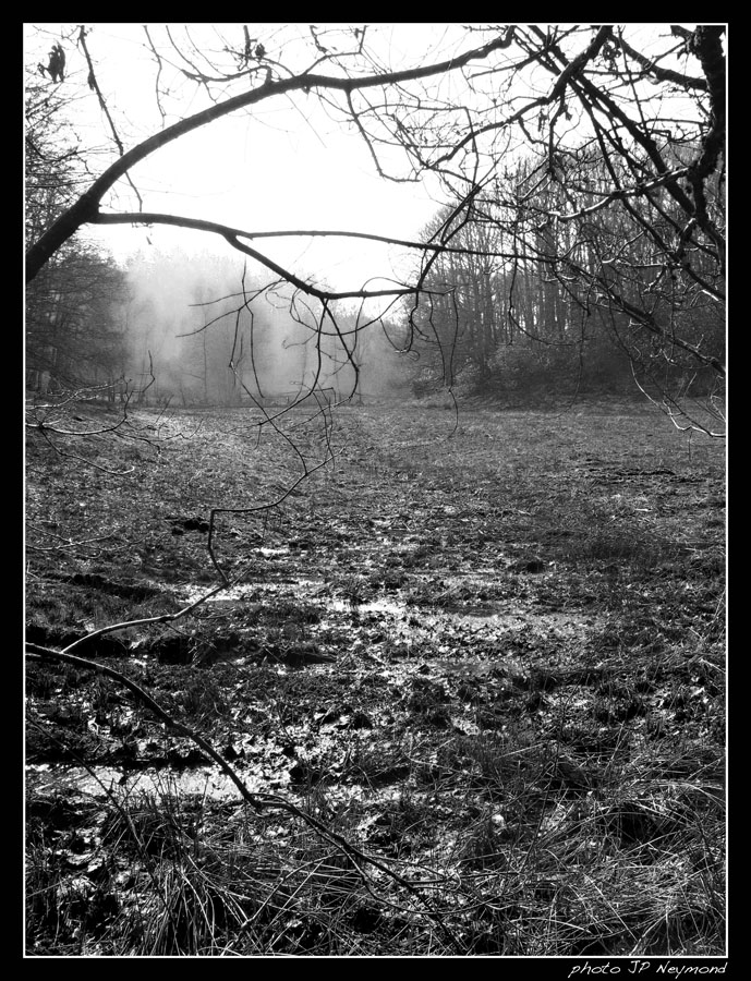 la brume se lève sur la tourbière des Dauges. (le flou est du à la compression car l'image originale fait 1m de long....