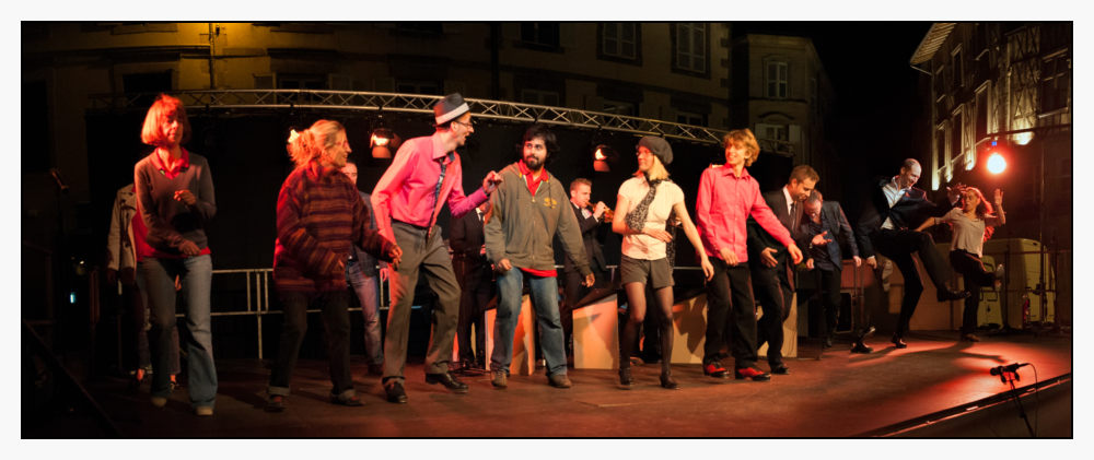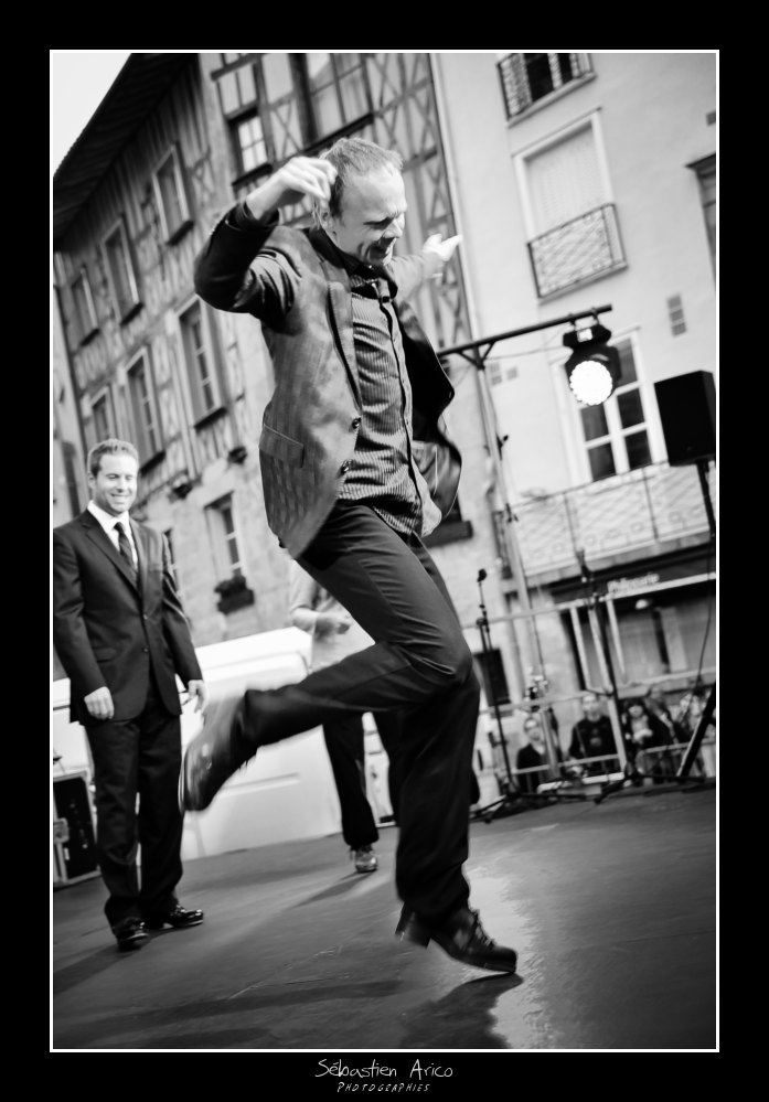 Bon, à mon tour, ... mais j'ai un peu honte de ce que je vous présente ; peu de lumière, ... devant le public avec un recul d'1,5 m et donc au grand angle, ... ou derrrière le public et on ne voit plus les pieds ( mais des têtes )