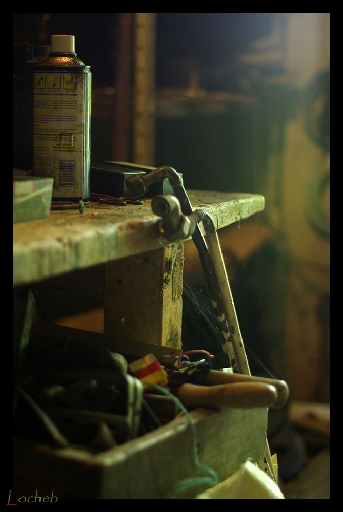 La netteté n'est vraiment présente nulle part... à part peut-être sur le pied de l'établi. Tu as pris cette image au 1/13 (d'ou un flou de bougé), mais le diaphragme n'est pas lisible dans les exif...