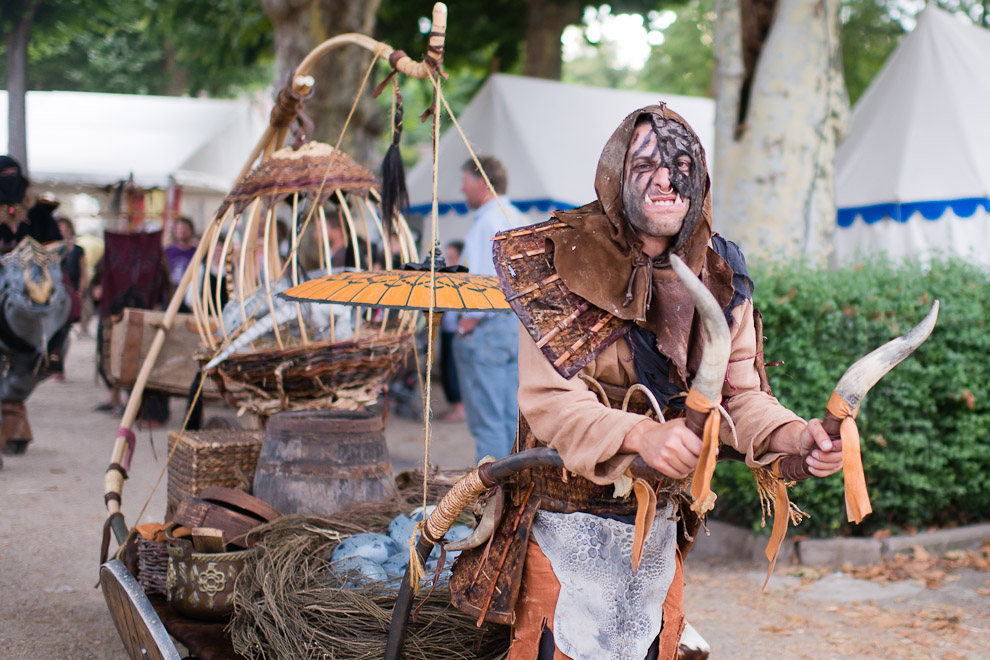 C'est un festival médiéval qui se passe actuellement à Souvigny à quelques km de Moulins. Je suis passé totalement par hasard, il y avait de nombreux spectacles de rue et la plus part des spectateurs venaient déguiser. L'ambiance était vraiment sympa, souvent animé par un groupe de gueux qui n'hésitaient pas à se frotter contre la foule. La fin de la soirée était couronnée par un repas costumé à l'ancien.