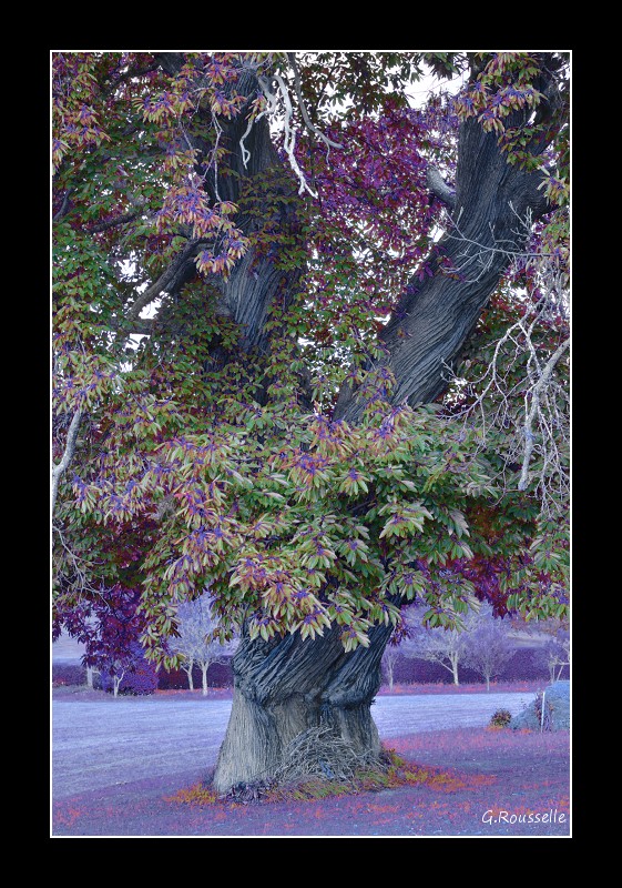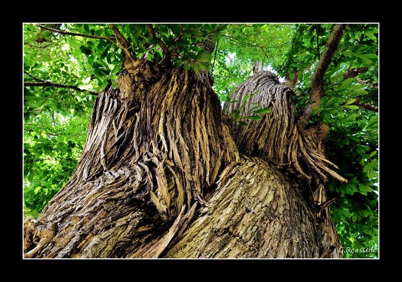 Pour moi, nette préférence pour la 2 et l'effet de matière de l'écorce de ce vieux chataigner qui multiplie l'impression de force et d'invulnérabilité ; la première n'est pas mal mais beaucoup plus banale.