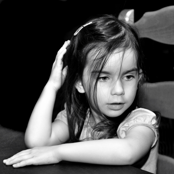 Effectivement la 2 se détache du lot. La bonne profondeur de champs avec les 2 yeux bien nets. L'angle dans lequel a été prise cette photo,le traitement NB qui convient, et bien sûr le regarde de la petite fille font que c'est photo est joliment réussi.