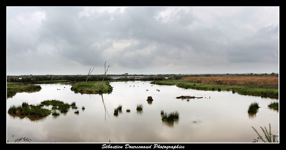 Une vue de la vasière des Spatules... sans les Spatules mais avec des Oies cendrées