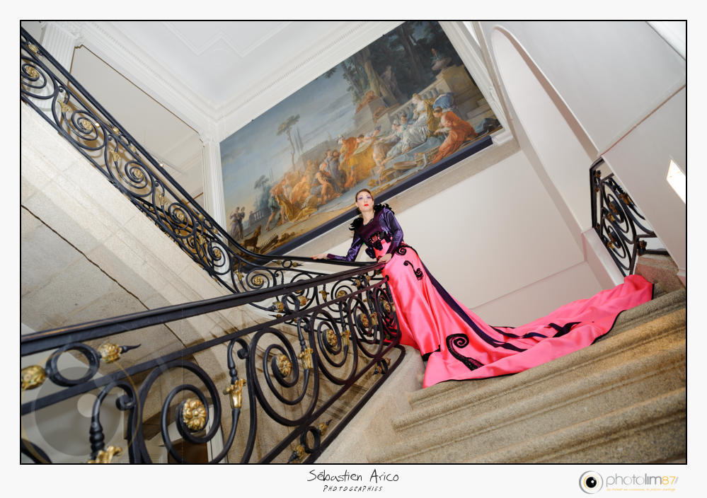Un exercice sans filets (rien n'était préparé)... sans vrais éclairages (pas de possibilité de poser de flashs déportés pour supprimer les ombres, contraintes d'angles de pdv, des vitrines partout, des reflets à ne plus savoir qu'en faire...etc...), sans repérage, sans objectif vraiment défini, face à un styliste et 4 robes de scène portées pas des modèles aux silhouettes très différentes. N'ayant personnellement aucune expérience du studio, le challenge n'était pas sans risque car nous avions une obligation de résultat...