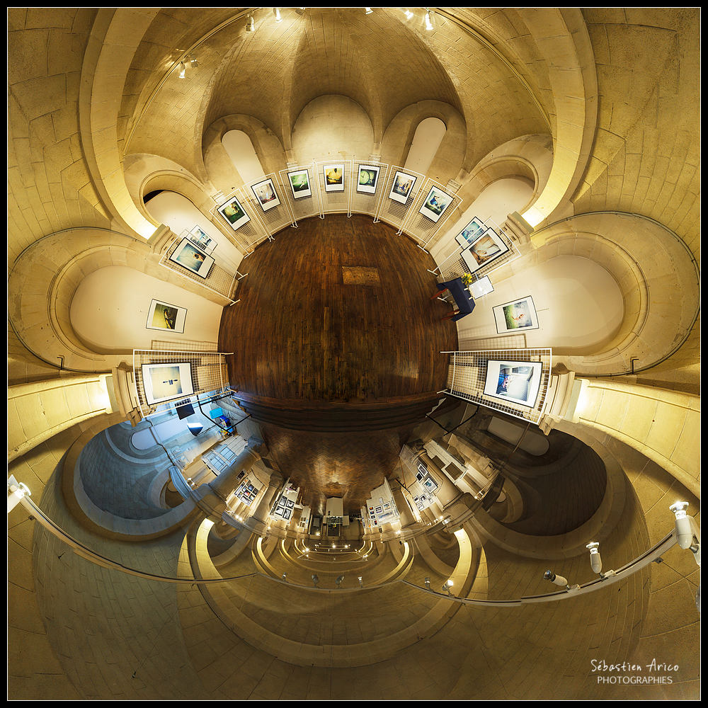 la prise de vue est faite depuis le sol, comme pour un panorama traditionnel (mais à 360°). Le fait qu'il y ait des imperfections vient surtout du fait que comme j'ai pas de tête panoramique sur mon trépied, il y a des raccords imparfaits... et malgré le temps passé, je n'ai pas réussi à les rattraper tous...