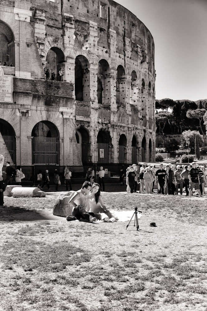 La dernière: émouvant couple asiatique "just mariés" qui font leur autoportrait devant le Colisée...